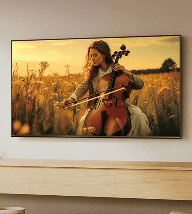 240Hz的超高刷新率配合VRR可变刷新率,确保游戏画面流畅无拖影。音响方面,内置安桥Hi-Fi音响,声音环绕感到位,设计上超薄一体化,挂墙时几乎贴合墙面,外观时尚。