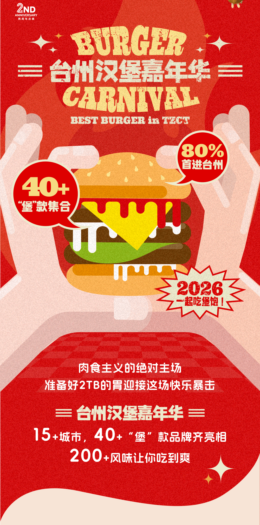 活动介绍:汇集了如“百萬汉堡”“碳水玩家”“BOBO汉堡商店”等40多家人气汉堡品牌,带来各省市特色风味汉堡,配套活动打卡、文艺演出等互动内容,打造沉浸式的嘉年华体验。