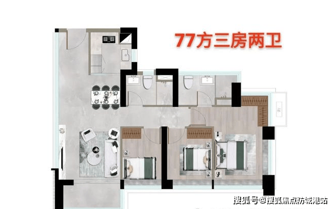 对于刚需家庭来说,这个户型性价比极高,总价500万起,就能在主城买到三房,而且配套完善,教育、交通、商业都很便捷,不用为了价格牺牲配套,也不用为了配套牺牲居住空间,是刚需家庭上车的首选户型。