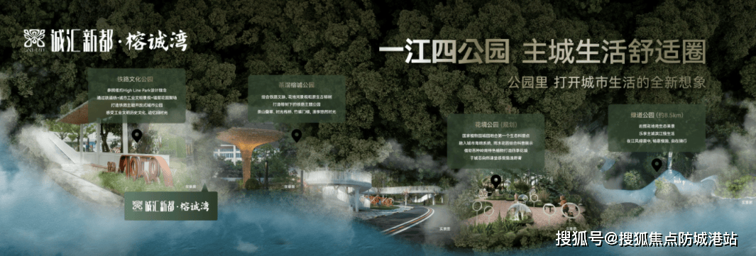 除了花地河,项目周边还环绕着多个公园,比如花地河绿道公园、榕诚公园,还有规划中的铁路文化公园、花境公园。其中,榕诚公园是茶滘城中村改造项目之一,于2023年4月正式对外开放,占地面积1.1万平方米,保留了广钢铁路文脉原本的功能,并与花地河环境资源及周边原生古榕树相结合,打造榕树下的铁路主题公园,园内还设有竹编门楼、时光月台、时光栈桥、儿童娱乐等景观游玩设施,让市民在日常休闲中感悟文化传承。