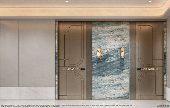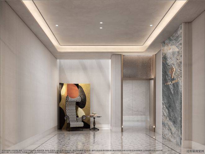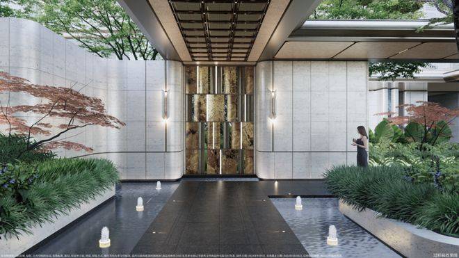 搭配艺术玻璃及古铜色金属窗框,辅以奢石、艺术等点缀,从上到下,处处皆是奢华质感。不止是建筑设计,项目对于公区景观、会所的审美表达与细节呈现都十分高级。