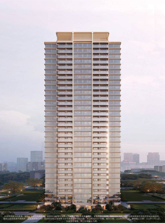 ,打造新城市曲面流体建筑,圆弧式转角背后即是对于艺术滨江的美学致敬。香槟金色格栅塔冠与壁柱形成的形制立面,完美演绎“玺”系基因的精髓,尽显低调奢华的气质。