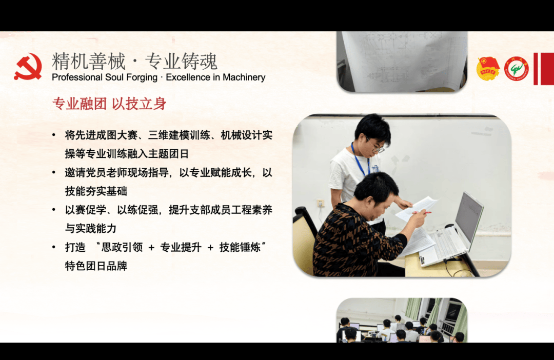 机械242班团支部秉持“弘毅求精”信念,绩点领跑专业。坚持思想铸魂,将理论感悟转化为技术攻坚动力,独创“三步阶梯科研法”,在机器人世界杯及 3D 创新设计等国家级赛场展现硬核智造实力。这是一支学术领先、智造强基的队伍,正以奋斗姿态在机械强国的赛道上跑出青春“加速度”。