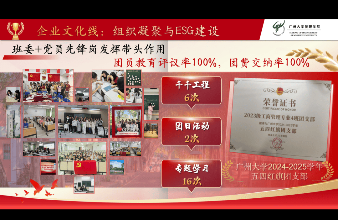 工商234班团支部以“企业化”模式在展示环节开启了一场极具张力的年度路演。从云端共享的“知识管理系统”到人手一张的职业入场券,用极高优良率与半数成员的奖学金红利,完成了对学术主业的超额交付。国赛上,他们以专利与银奖筑起不可替代的技术护城河。这不仅是一次成果发布,更是一份诚挚的“合伙人”邀约——这群商管青年踏歌而行,在时代的风浪里扬帆。