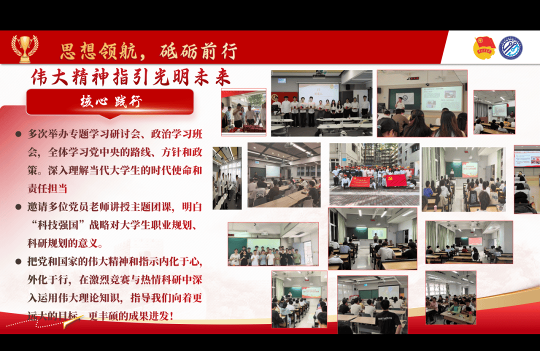 计科232班团支部在黄大年式教师团队党员老师引领下全方位发展,走进红色阵地沉浸研学,筑牢信仰根基;深入乡村打造AI助农直播间,开办科技夏令营点亮编程梦想,获多家主流媒体报道,斩获多项荣誉。在结尾师生并肩喊出的誓言掷地有声,澎湃的音浪交织计科232团支部的报国志气。