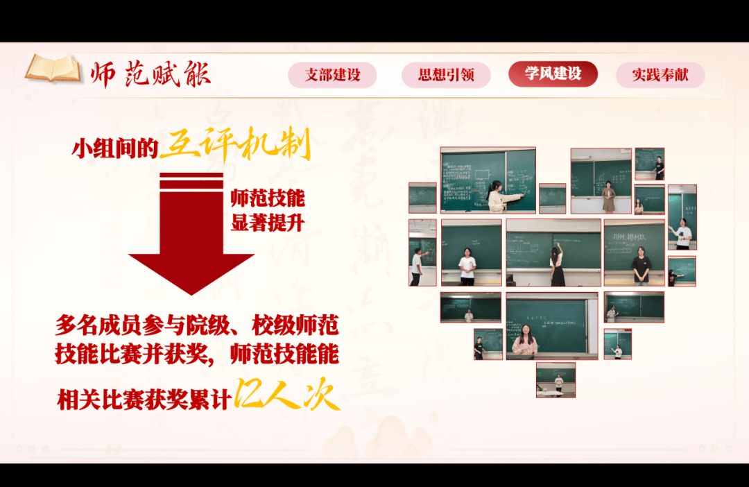 化学244班团支部如“分子键”般紧密聚合,构建起红、蓝、橙三色育人矩阵。与团支部代表的问答互动,彰显青年朝气,台上情景演绎首创的“课堂讲师制”,展现学术钻研与师范技能的双向互动。最后集体高歌合唱,让理想的芬芳随歌声漫过实验室和讲台,让每一个奋斗瞬间都得以“生花”回响。