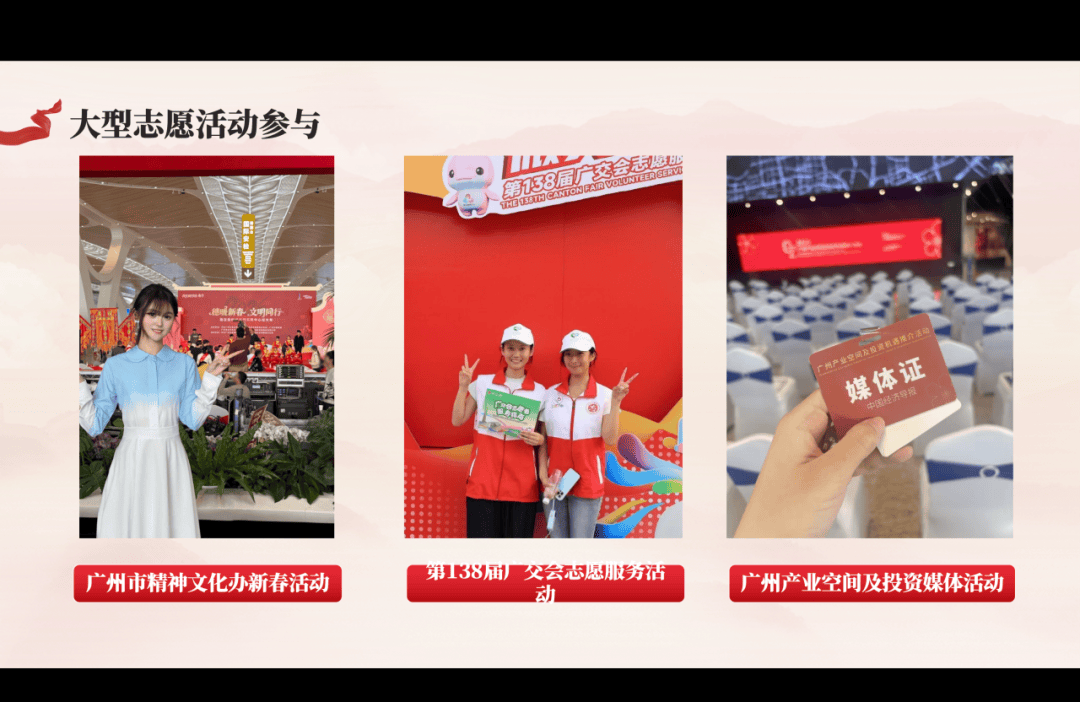 播音241班团支部探索出一条“声音+思政”深度融合的路径,通过红色配音秀、家书诵读及博物馆义务讲解,将播音主持专长转化为传播红色文化的生动实践。从广交会志愿服务到十五运会演职,将“声音名片”递向社会,在实现全员参与、全员出彩的同时,以“声”动力量筑牢信仰根基。