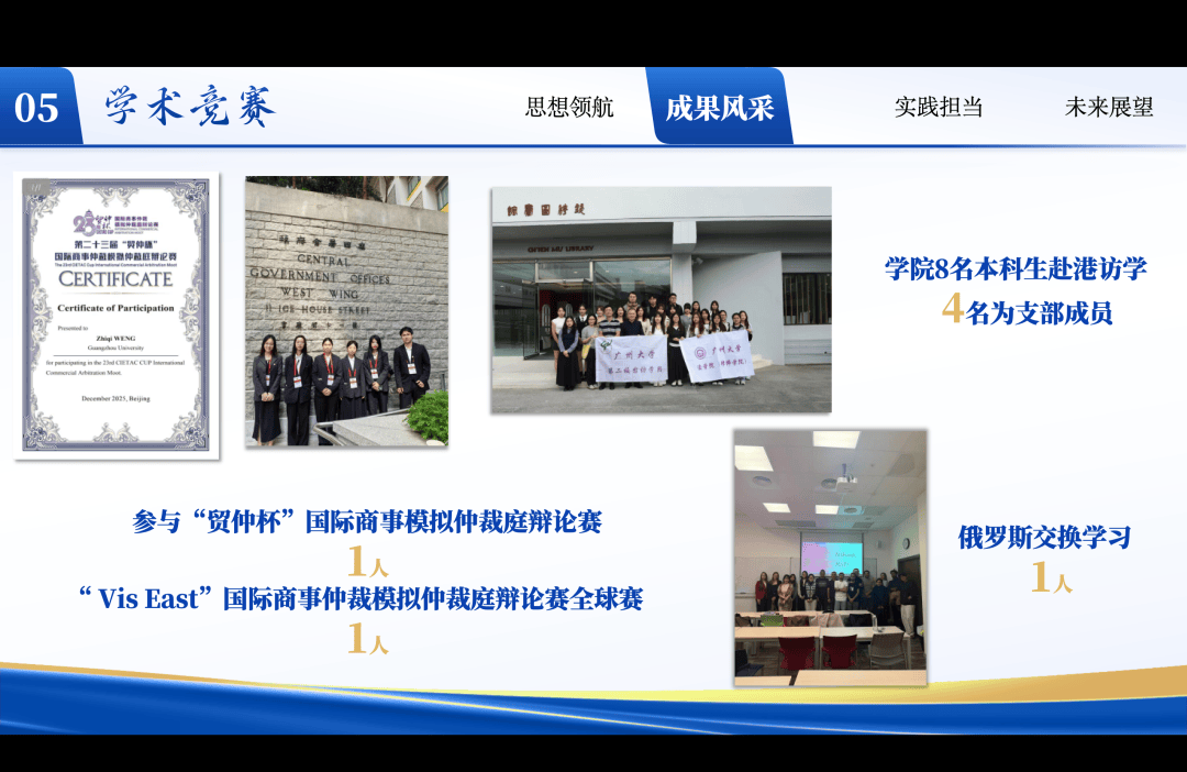 国际法241班团支部坚持“崇法明志,学践知行”理念,构建“全球视野+法律实务”双核育人模式。通过海内外研学与“贸仲杯”等顶级赛事磨砺法治素养,现场演绎纠纷调解情景剧更显“法律人”的专业风范;深耕劳动仲裁辅助与基层普法,将法治理想转化为服务社会的具体行动。始终对标国际化前沿,在实干中塑造德才兼备的法治接班人。