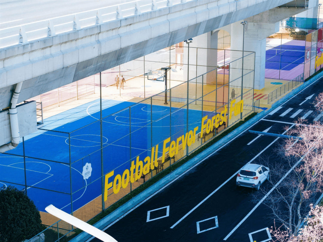 公园名字里的“F₄”很有意思:“FOOTBALL FERVOR(绿茵热血)”“FOREST FUN(林间野趣)”。这里不仅有网红网球场、街头篮球场,更有一片森林足球场——身后长江奔涌,面前五桥横卧,堪称南京独一份的“江景球场”。