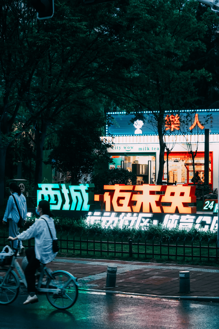 高架桥下,灯光璀璨的“西城·夜未央”街区,将桥梁的硬朗线条与夜间的温柔光影完美融合。
