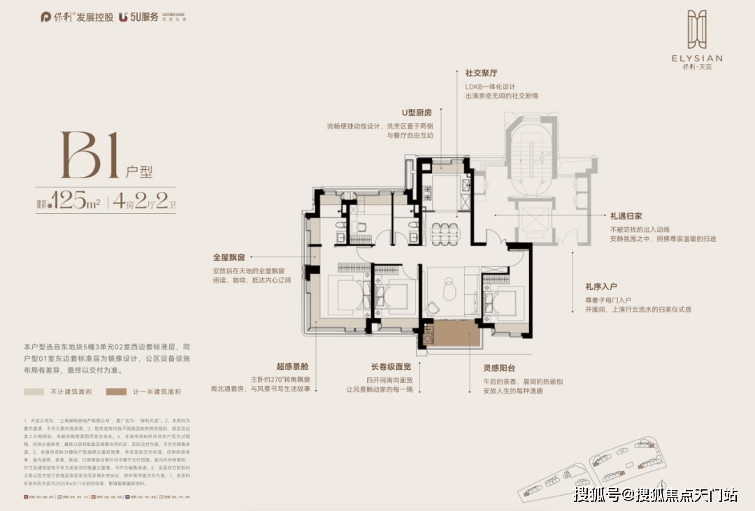 l建面约125m²边套户型:四开间朝南+满飘窗赠送+类一梯一户设计,均价8.48万/m²价格要低于二批次同户型价格,975万即可上车!