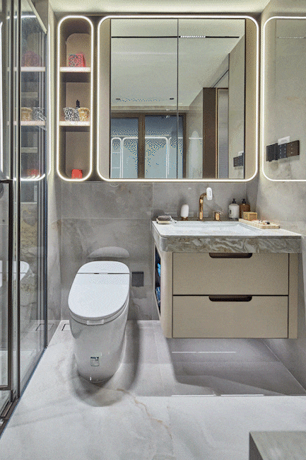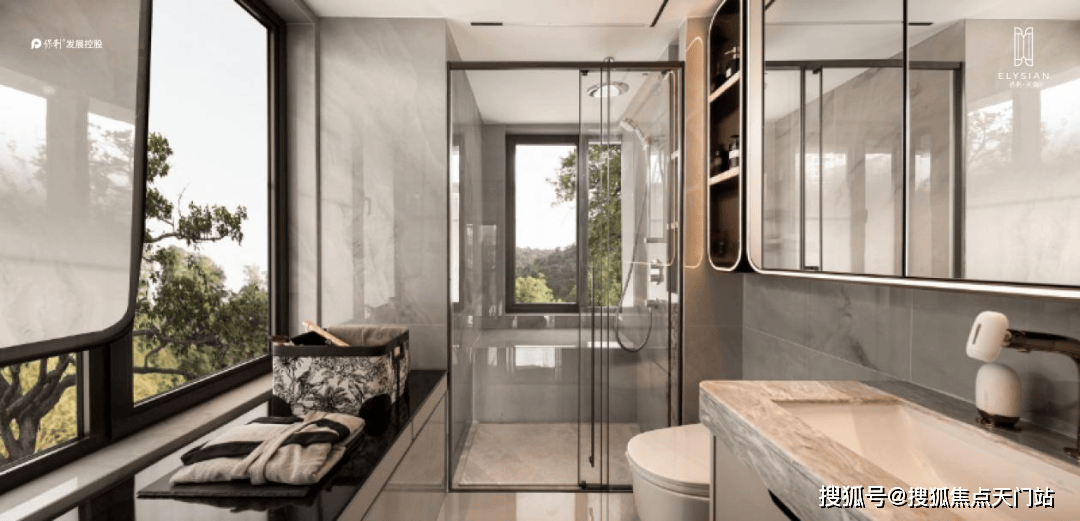 保利天奕特别关注到女性的生活需求,专门在卫生间配备了美妆龙头、美妆镜柜、美妆冰箱,采用“顶+面双补光照明”,能把“女本位”需求做到如此细致,目前没有几个项目能做到!