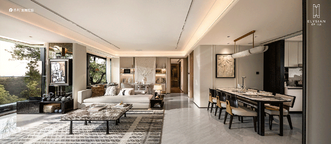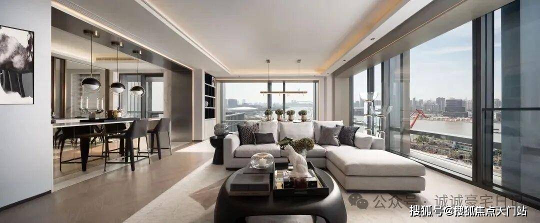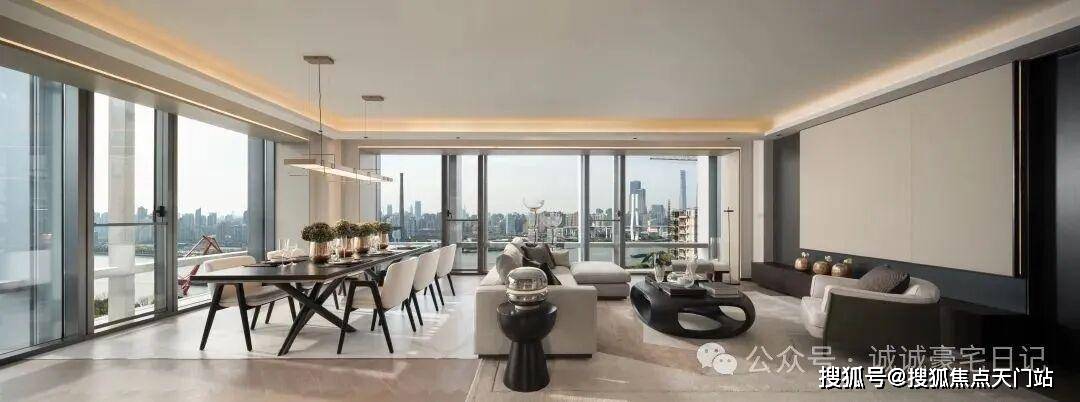 ·建面约240㎡边套,采用L型转角落地窗,打造了270°环幕瞰江视野,无论身处客厅、餐厅,都能以不同角度眺望黄浦江的波光粼粼。