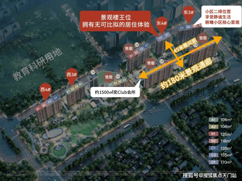 1.东4#楼王位置!整栋全部是约170m²的大户型,更加纯粹的改善圈层;同时位于东地块的正中央,既距离南面道路较远更安静,南面更可俯瞰社区中央景观,远眺外部休闲绿地双重景观!集所有视野优势于一身!