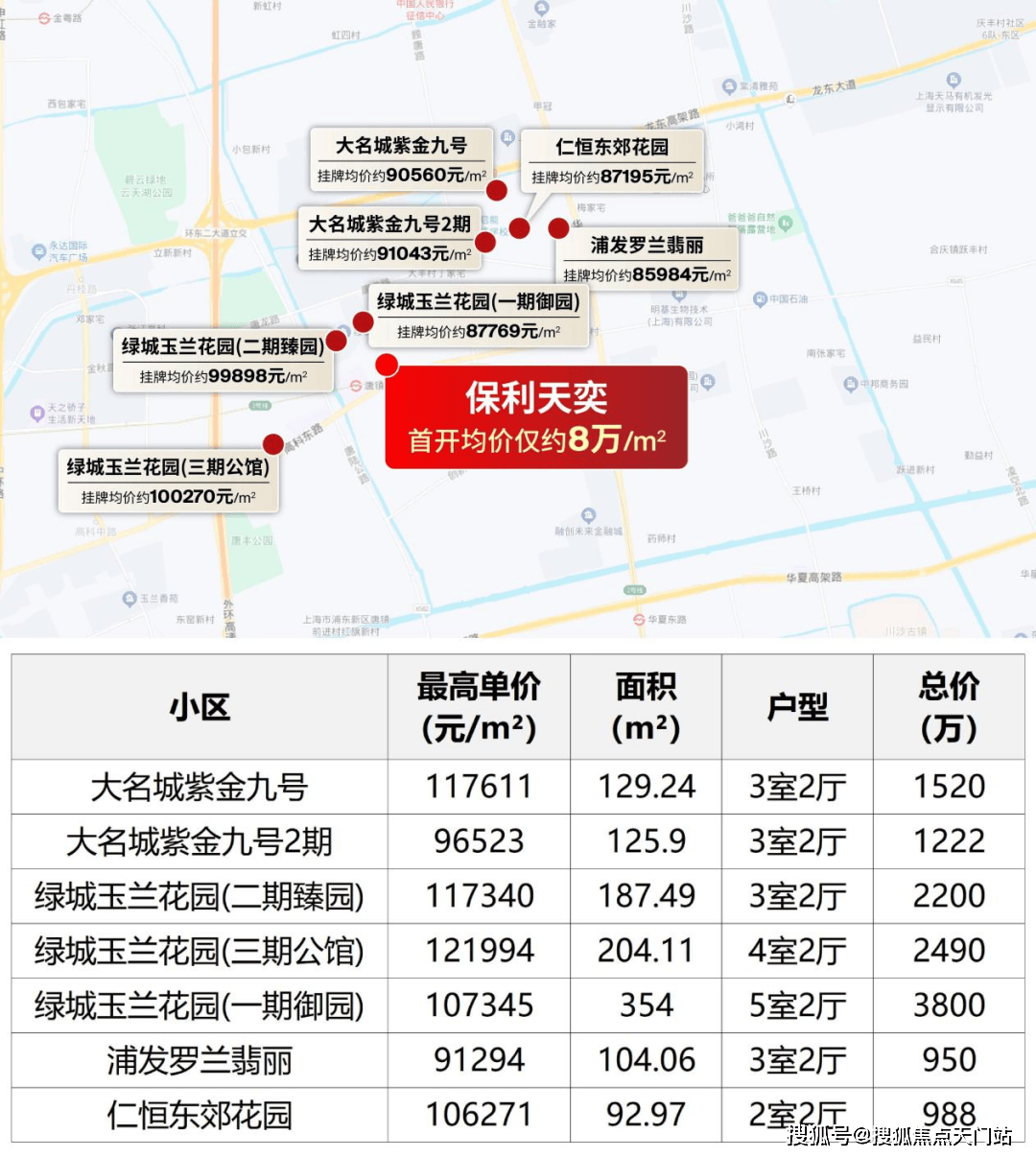 从去年保利天奕溢价率26.6%,到上个月联发曹路地块40%溢价率,再到现在招商&港中旅地块40%的惊人溢价,未来新房预期已经在9W以上!相较之下,保利天奕仅8万/m²的均价,已经是唐镇新房市场的“价格洼地”。