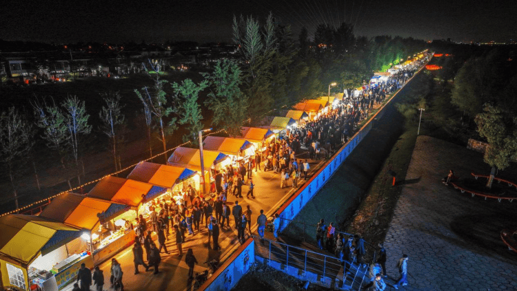 在赛场西南侧,江畔村超夜市同步热闹开市。近六十个摊位有序排布,涵盖地标农副产品、风味美食小吃、亲子休闲游乐等多元品类,以浓郁烟火气赋能赛事经济、撬动消费增量。现场设置了超大屏幕实时转播赛事,中场时分更有乐队现场演奏,市民既可以观看球赛、欣赏演出,又能品尝特色风味美食,沉浸式感受体育激情与市井烟火气。