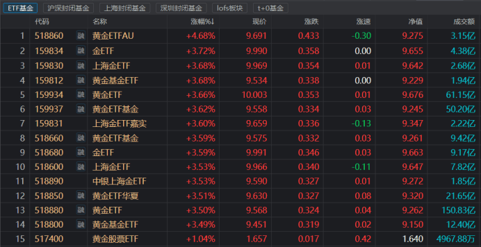 2025-10-19星空体育,星空体育官方网站,星空体育APP下载财联社10月17日讯(编辑 梓隆),今日(10月17日),黄金股、基再度活跃,截至收盘,湖南白银、西部黄金、晓程科技、中金黄金、山东黄金等股涨幅居前。同时在ETF市场中,今日涨幅居前的15只ETF均属黄金概念。