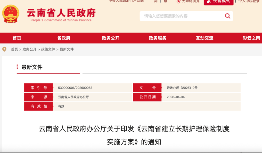 云南省人民政府办公厅印发《云南省建立长期护理保险制度实施方案》,明确用3年左右时间,建立覆盖城乡、运行规范、保障适度的长期护理保险制度,重点解决失能人员长期护理保障问题。该方案自2月5日起施行。