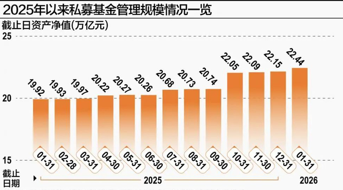 回望过去十年,我国私募基金行业的发展轨迹清晰勾勒出“规模扩张、结构分化、质量提升”的演进路径。2016年以来,行业摆脱初期粗放发展模式,借助资本市场改革红利与居民财富管理需求升级,实现规模持续突破。截至2026年1月末,管理规模已连续四个月刷新历史纪录,稳稳站上22万亿元。